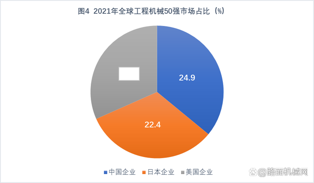分國別來看,2021年全球各國市場份額排名前三的國家分別是中國、日本、美國,2021年這三個國家市場份額分別為24.9%、22.4%、21.9%,三個國家在全球市場份額已經達到了69.2%,中國工程機械在全球市場份額占比已經接近四分之一。