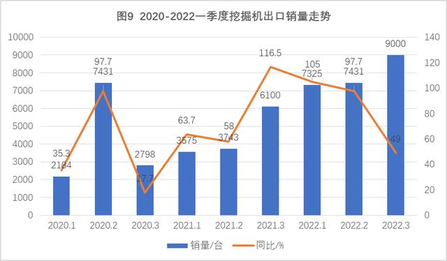 從2022年2月小松挖掘機全球開工小時數來看,北美開工小時數同比增長,歐洲開工小時數同比、環比均出現上漲,中國小松挖掘機開工小時數為47.9h,同比增長9.2%,從2021年3月以來,中國小松挖掘機開工小時數再次轉正。從百年建筑網3月11發布的調研情況來看,全國12099個項目工地的開復工率為90%,其中房地產85%,基建95%。雖然開復工數據未達到去年同期水平,但項目工地施工節奏逐步提升,只不過從實際市場情況來看,始終是勁頭不足進度緩慢。中央政府要求擴大有效投資,適度開展超前基礎設施投資,兩會后資金到位速度明顯加快,穩增長主線下,行業需求改善趨勢明顯。但由于近期各地疫情反復管控趨嚴,“停工、停產、停運”對部分地區項目工地施工進度受到一定影響,對工程機械行業產生了較為不利的影響。